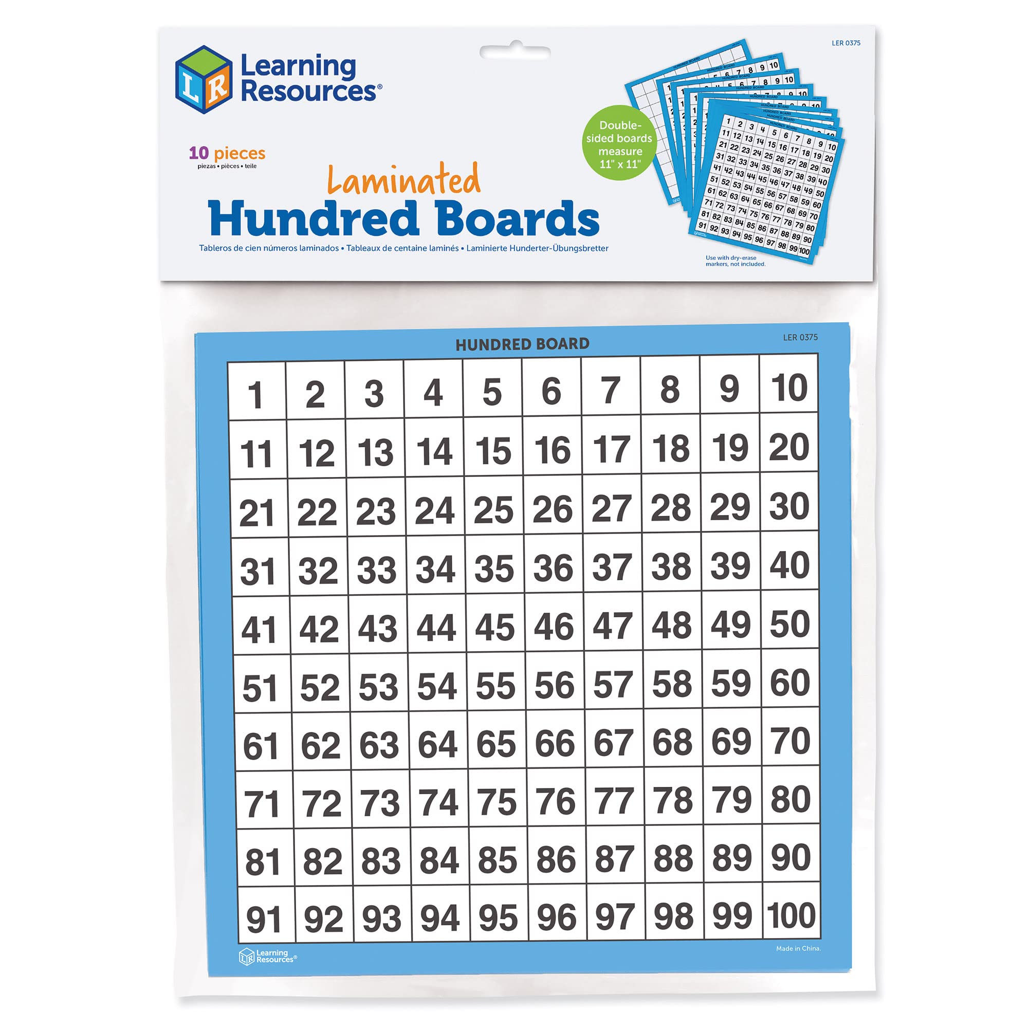 Learning Resources Laminated Hundred Boards, Dry-Erase Counting Aid, Set of 10, Ages 5+, Multicolor, Model:LER0375